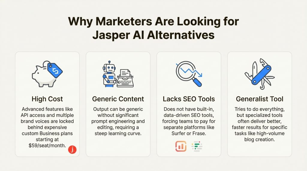 If you’re evaluating this platform, you may also want to explore our guide on Jasper alternatives, which compares several tools with similar capabilities.